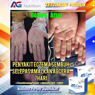 Selain membantu masalah dalaman Ag cera juga membantu dari segi luaran. Syukur Ag Cera membantu pengguna yang alami masalah Ekzema yang teruk dan juga kulit